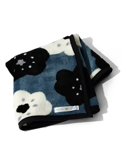SOU・SOUのテキスタイルをほどこしたブランケット。さっと手に取ってかけられる、おくりものにもおすすめです。