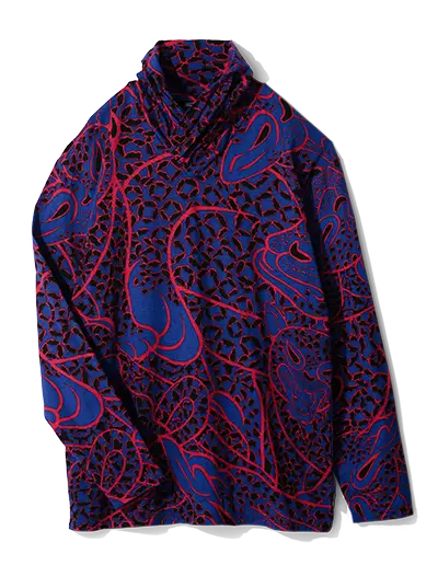 肩幅の広いデザインは、羽織るだけでより一層カブキモノらしい雰囲気に。レイヤードスタイルにおすすめ。