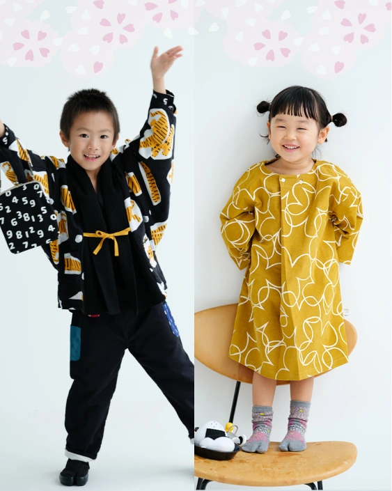 Basierend auf dem Konzept der Kindlichkeit (warabegi = kindliches Gefühl),SOU・SOUbietet japanische Kleidung für Kinder an. Wir verwenden Materialien, die sanft zur Kinderhaut sind, hauptsächlich Tenugui aus Ise-Baumwolle.