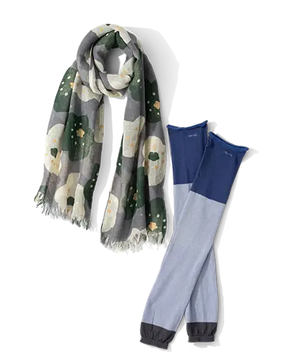 ストールや帽子など、SOU・SOU流のコーディネートにひとさじ加える小物アイテム。