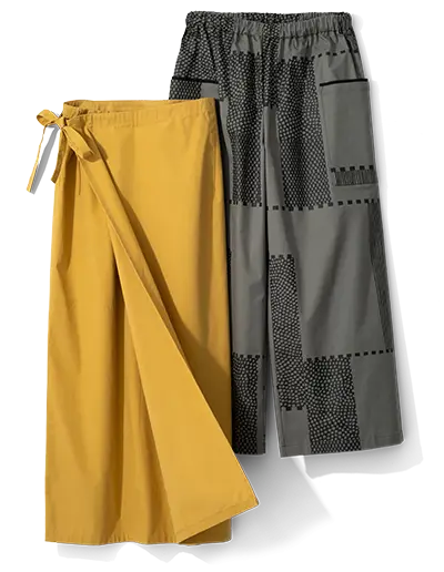 Kosode KimonoYaKantouietc. oldminds old time withpresentsdesign ofpresentsDesignPants and SkirtsSOU・SOUflowingTOPS.MaterialNicodaWaWear the clothes you woreRelaxAlong the body, the feelingYominds old time withAllows the wind to pass through.