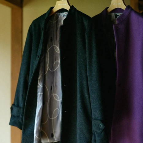 立ち襟着丈もよく、ゆったり着ることができます。生地と裏地どちらも品あり、スッキリとしたデザイン。