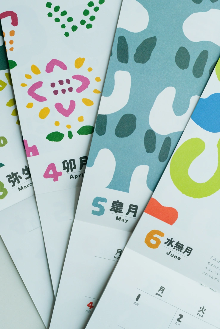 令和七年に発表した「花でしょうね…」をテーマに12種類のテキスタイルが毎月を飾る暦が仕上がりました。日々目に触れるような場所に飾っていただき、テキスタイルはもちろんテキスタイルデザイン名と脇坂克二の文言も合わせてお楽しみいただけますと幸いです。