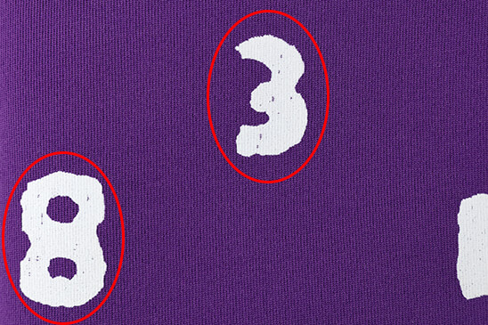 生地の特性上、丸で囲んだ部分のように印刷にかすれが見られることがございます。