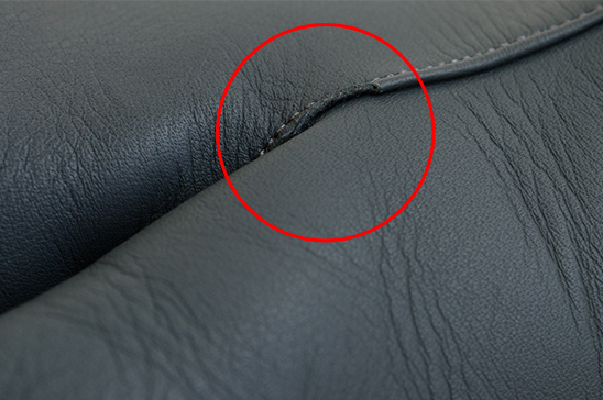 由于缝合,上裆区域的皮革有一个切口。
