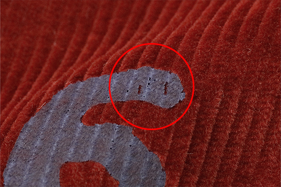 ※染色箇所は、着用や洗濯を繰り返すことによる摩擦やもみ作用により、染色部分がひび割れて剥がれたり、薄くなったりすることがあります。