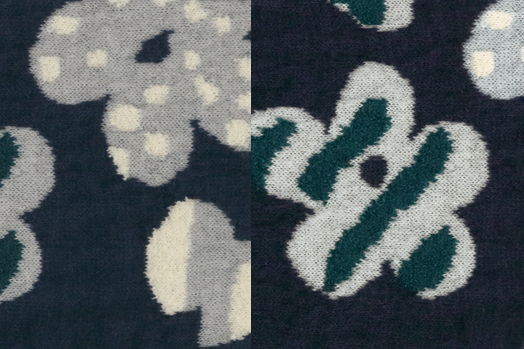 ・使用名為「風通」的技術,切換兩種顏色紗線編織而成,可雙面使用。